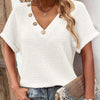 Cuello en V, manga corta, diseño de botones, corte holgado, color sólido, camiseta de color liso, cómoda y encantadora camiseta de verano para mujer. Esta camiseta de punto de manga corta es ideal para verano, otoño y primavera.